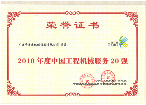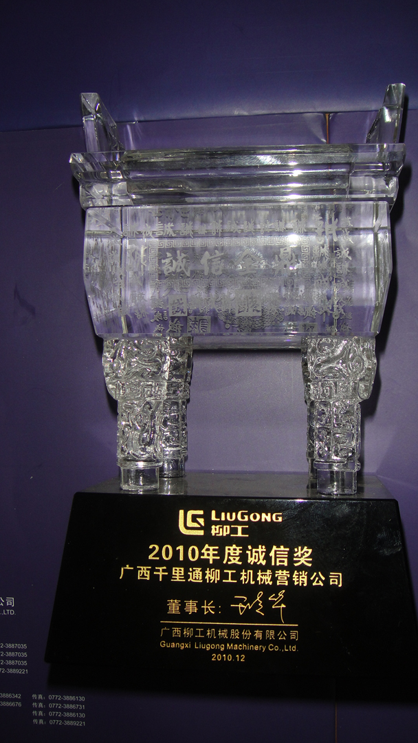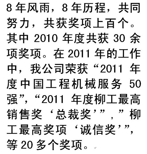 我公司荣获“柳工挖掘机2010年度营销总裁特别奖”