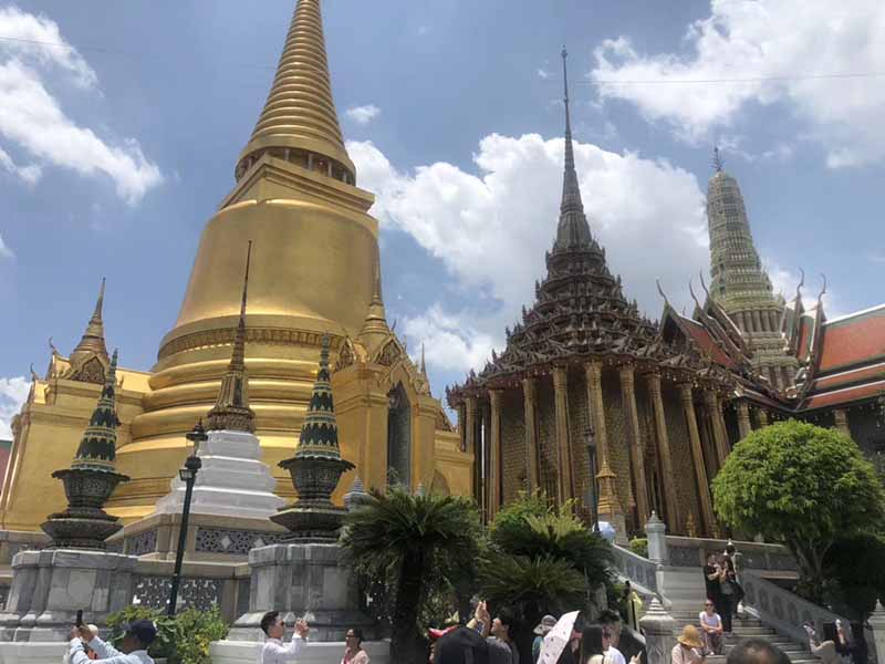 泰国素有“黄袍佛国”、“千佛之国”之美称,佛教享有国教的地位与尊荣,对当地政治、经济、社会生活和文化艺术等领域有重大影响。堪称泰国最重要的佛寺—玉佛寺也在本次行程中,寺里供奉着由一整块翡翠精心雕刻而成玉佛,寺里装饰精美,洋溢着平和沉稳的氛围。泛舟湄南河,靠岸就到了郑王庙。该庙主要是由有五座佛塔构成,皆一模一样。但一大四小,最大的巴壤塔也被称作“泰国的埃菲尔铁塔”。当然,具有标志性的大皇宫也在我们的计划之内,这是历代王宫保存最完美、规模最大、最有民族特色的王宫。经不断修缮扩建,终成规模宏大的建筑群,至今仍金碧辉煌。